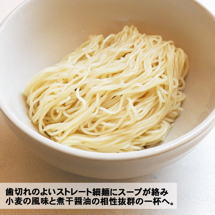 歯切れのよいストレート細麺になります。スープが絡み小麦の風味と煮干醤油の相性抜群の一杯になります。