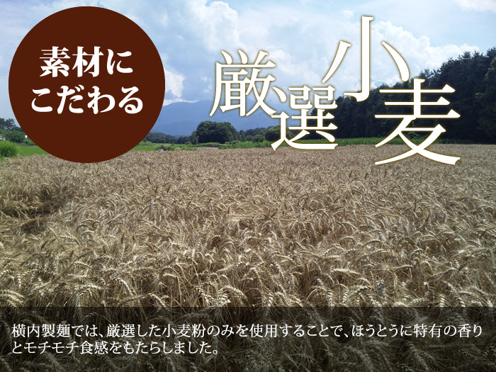 厳選された山梨県産の小麦粉を使用し、八ヶ岳南麓の湧水で練り上げた麺。もちもちとした食感が自慢の昔懐かしい味です。